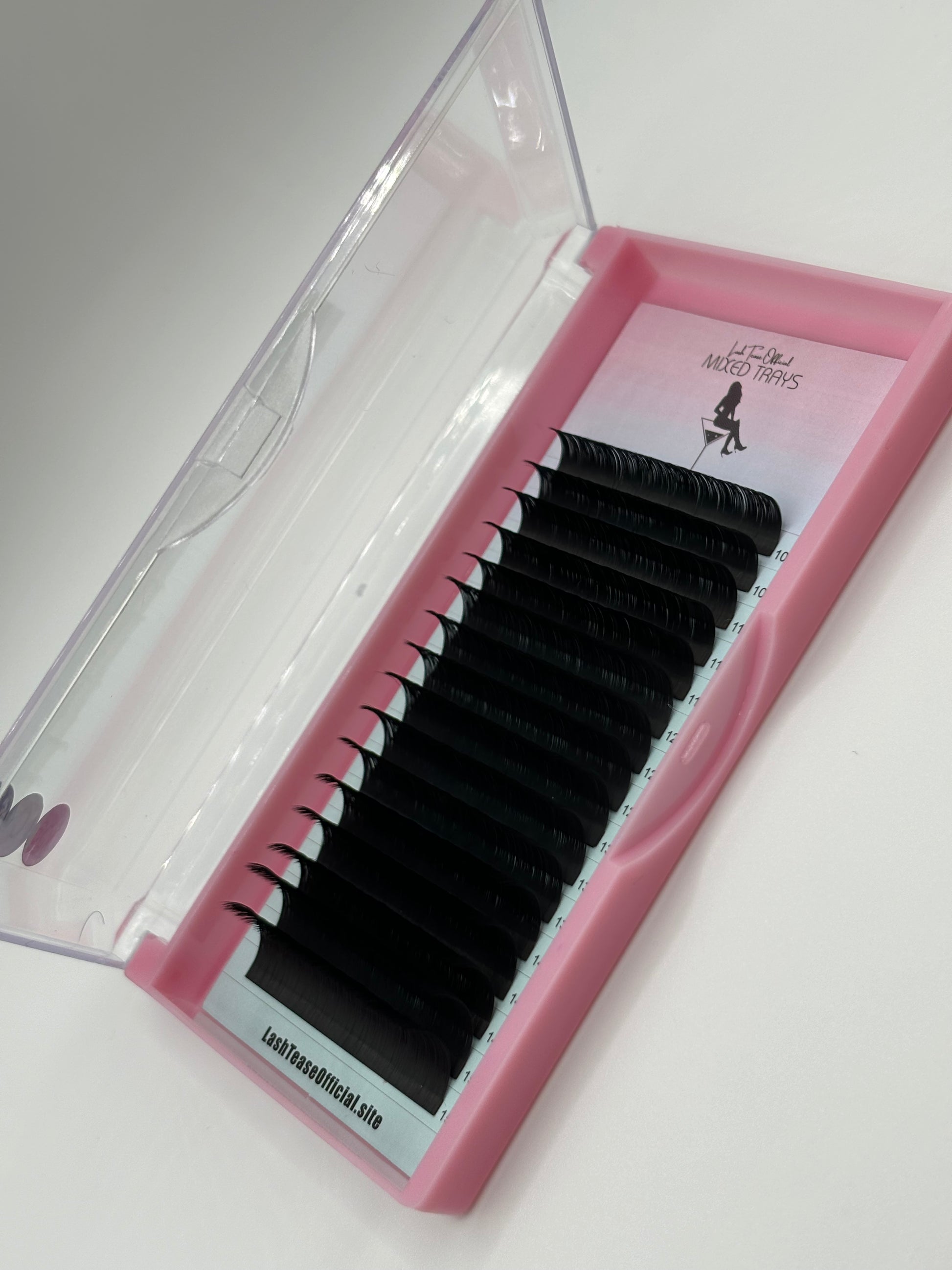 These lovely matte dark trays are the complete needs to your set. Sometimes we want those whispy sets or we just want to be different. These mix trays are for you. They are so many different lengths for each tray . Whether you are someone who is more of a natural lash tech or a dramatic one. There are so many different sizes to chose from. Definitely for you this lash tray will complete to client sets .